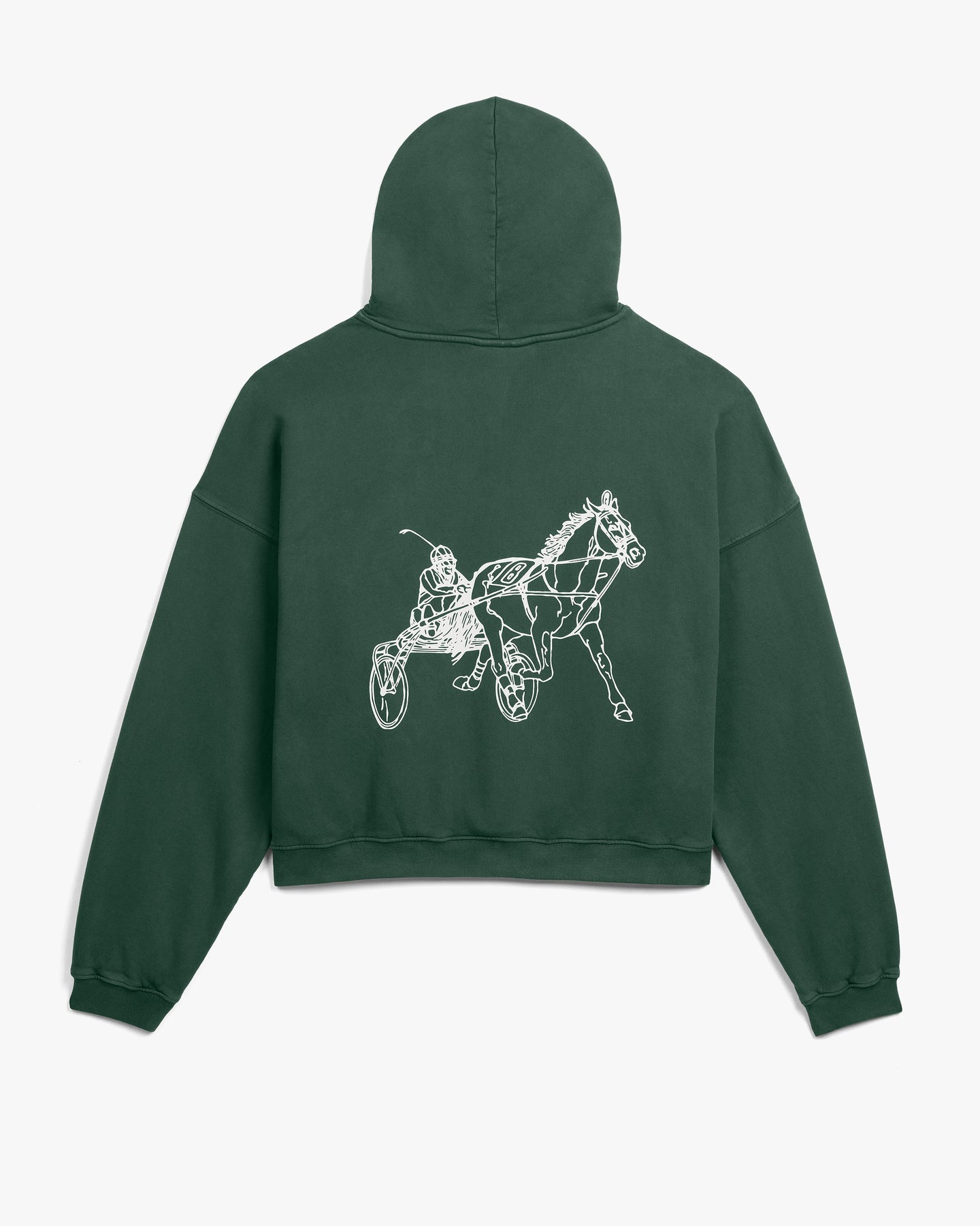 Green Siegelman Stable Hoodie with white "New York" logo print on front chest and racing logo on back.
