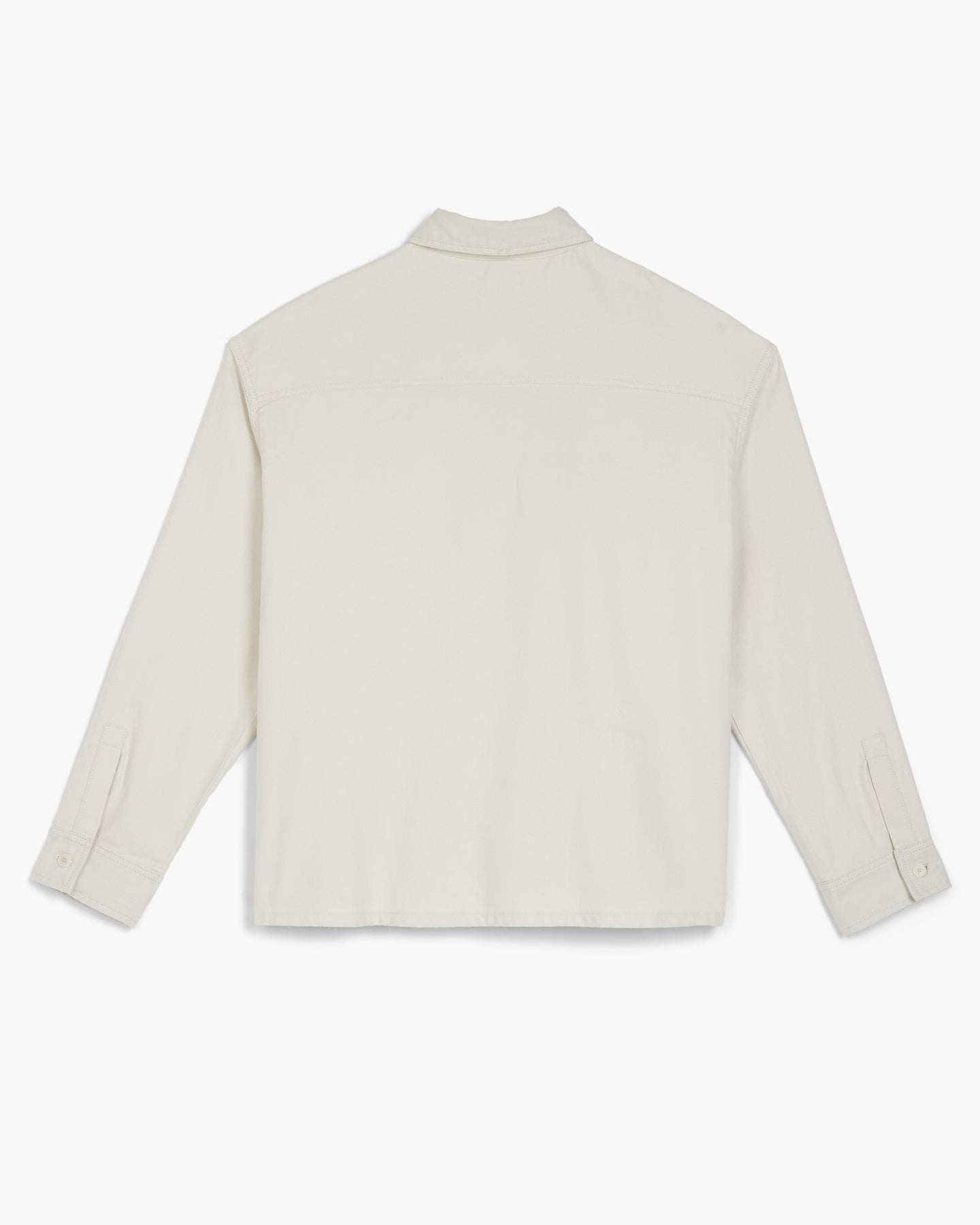 Collared pajama long sleeve shirt in vaporous gray with navy Siegelman Stable embroidery above wearer's right hip.